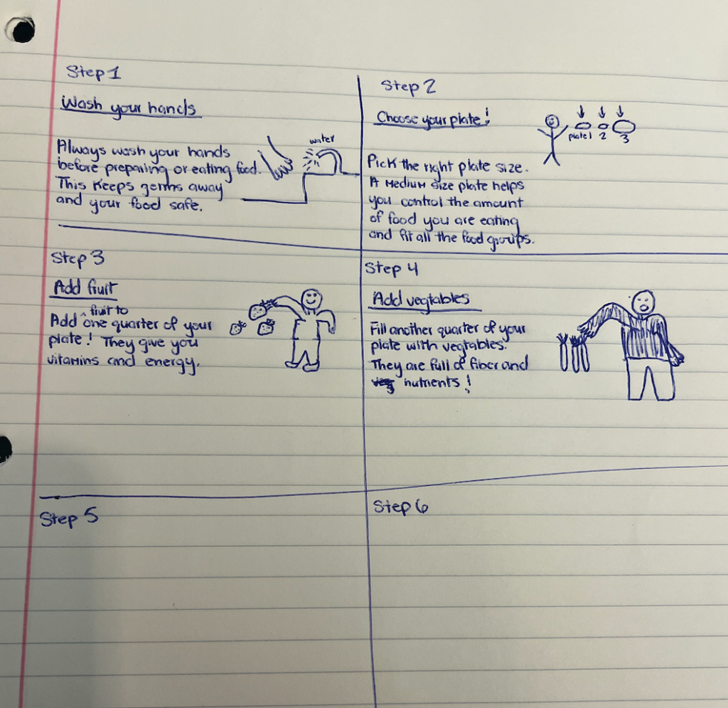 Our goal of this activity is for students to learn how to make balanced and informed food choices. We want them to consciously choose the healthier option to support their health and well-being. By the end of the lesson, students should be able to identify foods from each food group, understand the importance of healthy eating, and acknowledge how healthy eating makes someone feel. This activity helps students build confidence in making healthy choices at school and after school.