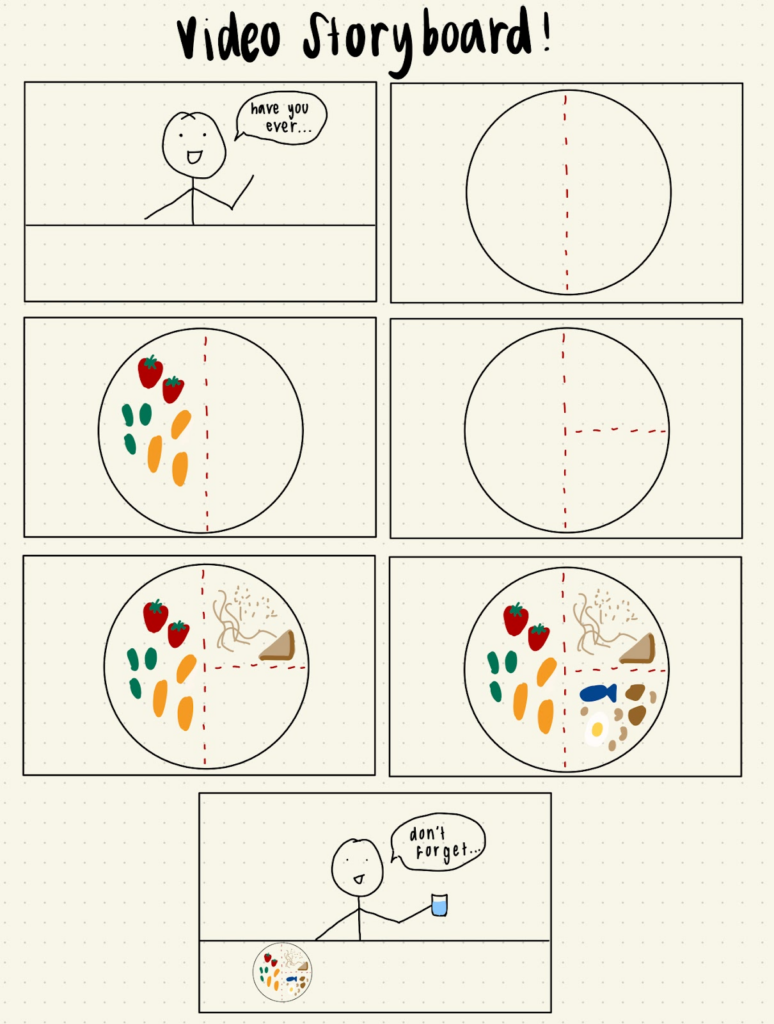 One aspect we would change is our team communication. Although we feel that our project turned out well, we encountered a few challenges that slowed down our progress. This issue mainly arose from limited communication during the early ideation phases. While we collaborated effectively when developing our context, audience analysis, POV statement, and learning objectives, our communication fell short when it came to creating the storyboards. Both Alexis and Julia independently created storyboards with overlapping ideas, resulting in two videos that were initially very similar. Once we recognized this, we met as a pair to brainstorm solutions. We decided that Alexis could adjust her video to include more diverse elements, such as grocery shopping tips, which aligned well with the “how-to” theme and minimized repetition across our videos.